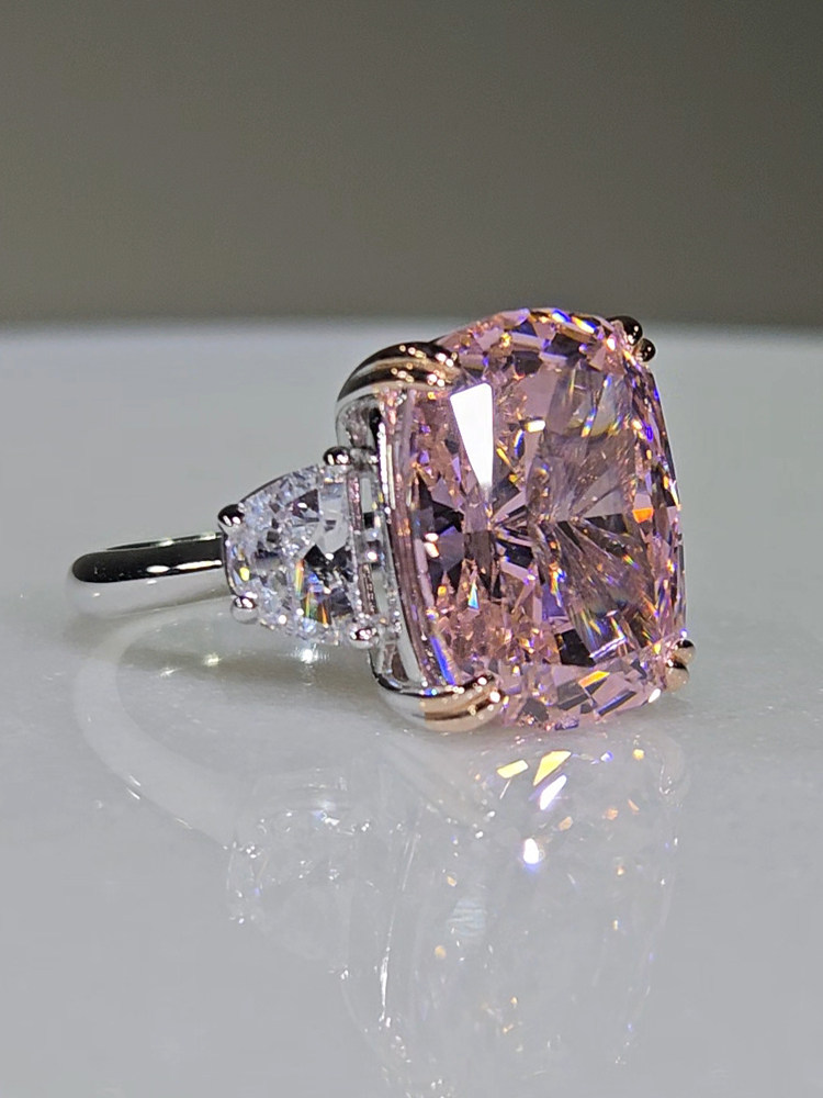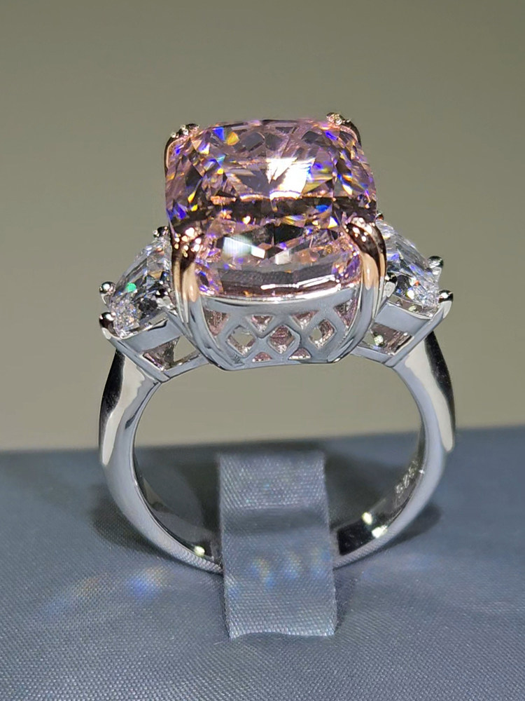 Stunning Gem & Design?New bridal ring featuring 7 - 14ct cherry - blossom pink synthetic diamonds. Crafted in pure silver with white - gold plating, the elegant design mimics high - end jewelry, perfect for adding luxury to any look.