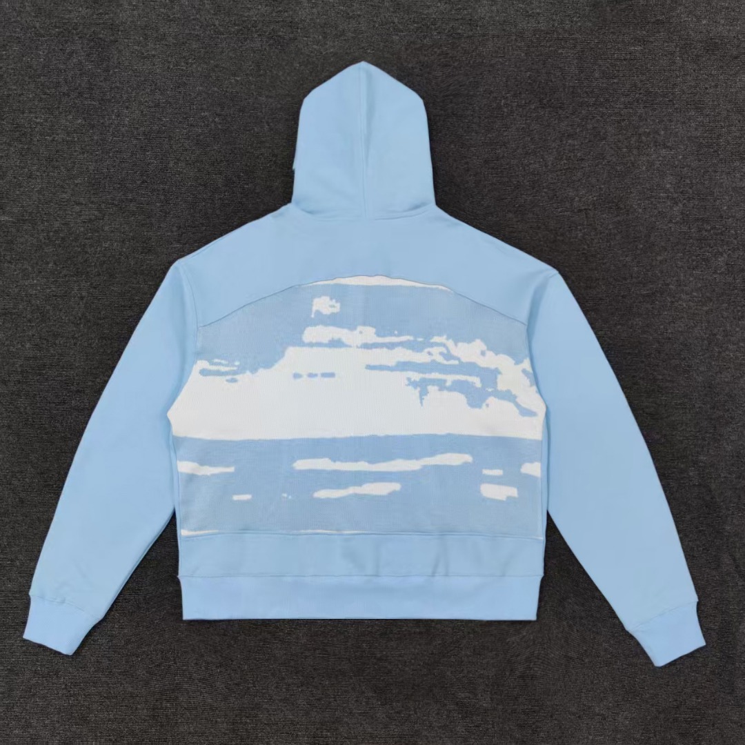Design: Jacquard knitted logo hoodie with unique cloud pattern