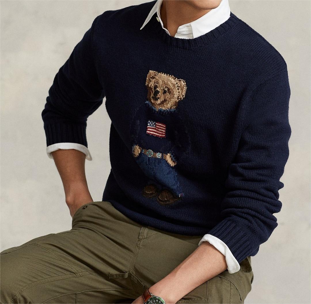 Classic embroidered design: Features a stylish bear and flag motif with intricate embroidery details.