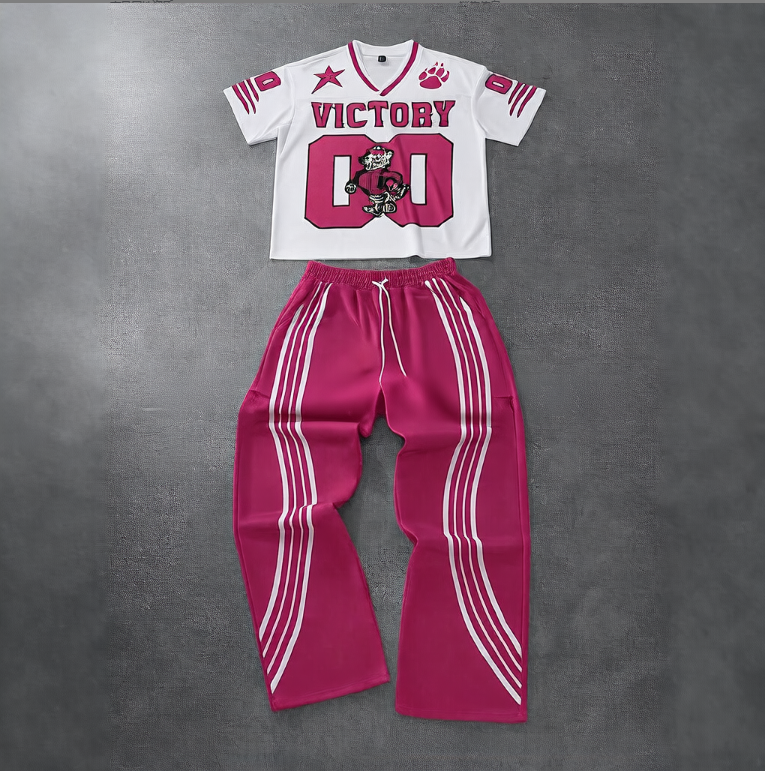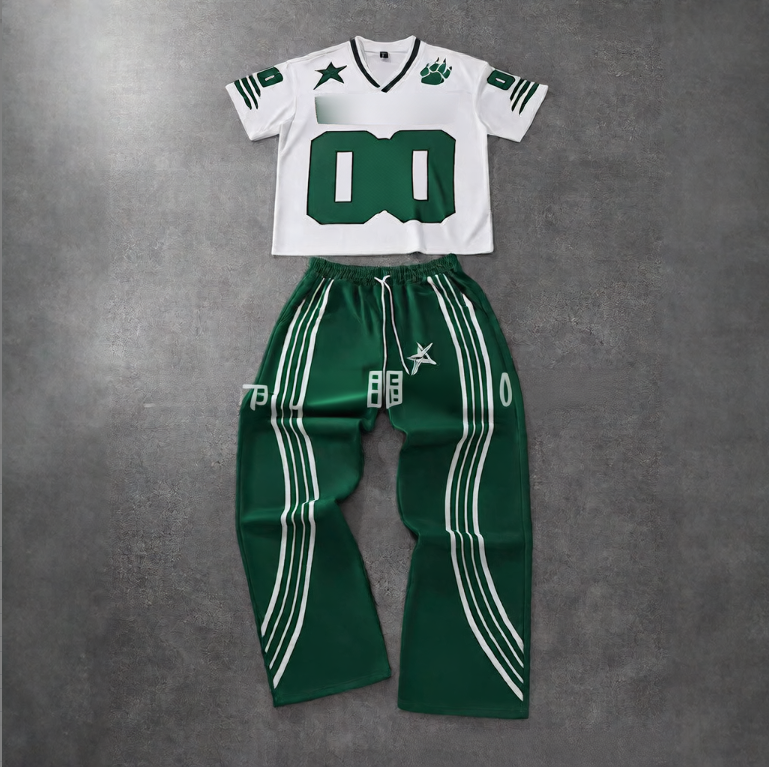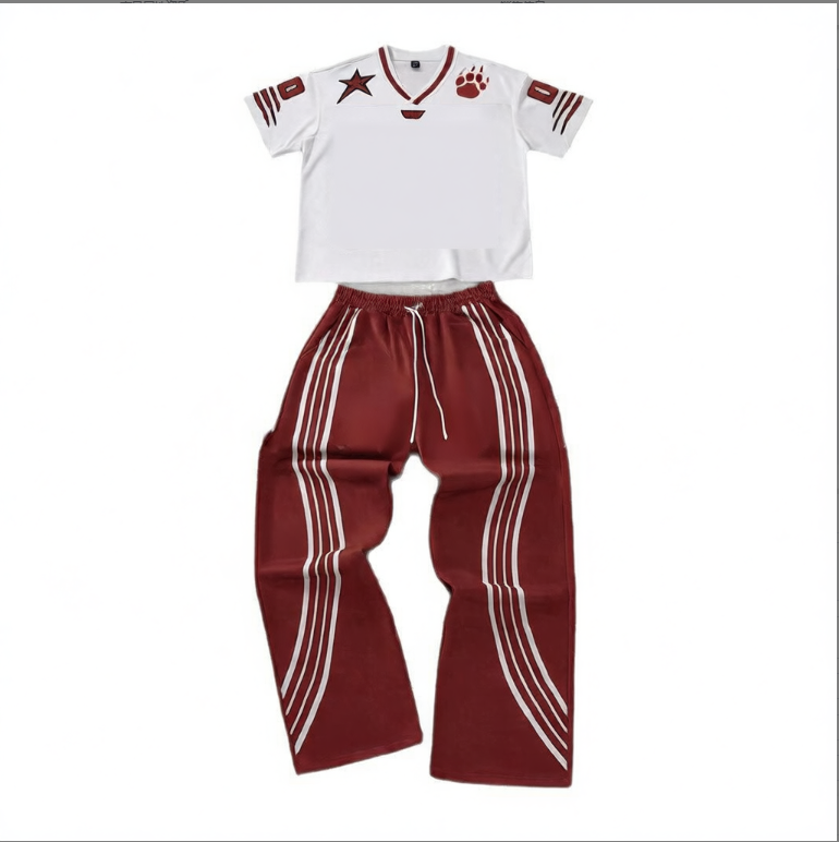 Style: Light and casual, non-hooded, short-sleeve T-shirt with long pants.