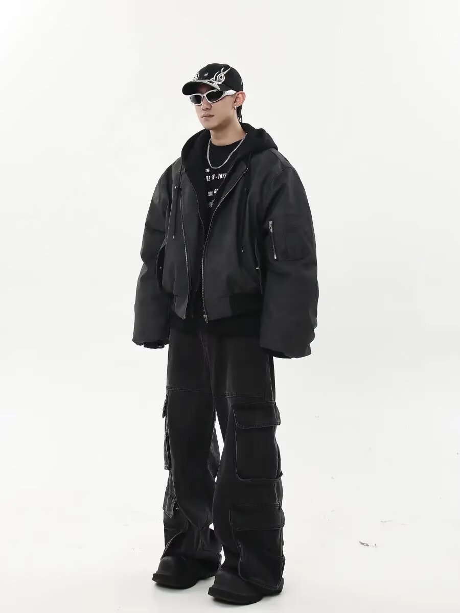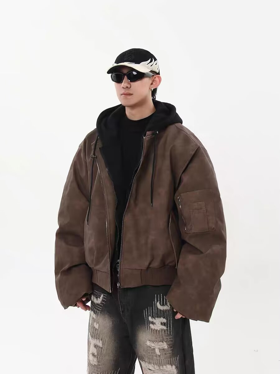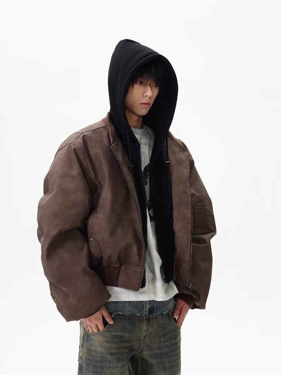 Modern Aesthetic: Faux leather jacket with a youthful and edgy appeal.