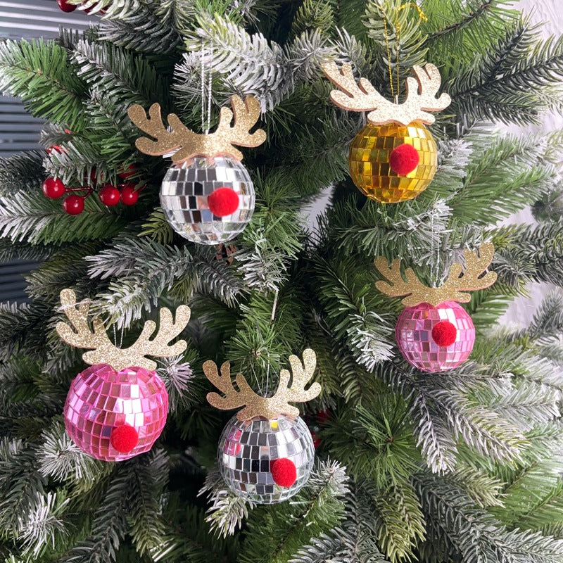 Festive Decor: Eye-catching disco mirror elk horn design perfect for Christmas parties and tree decorations.