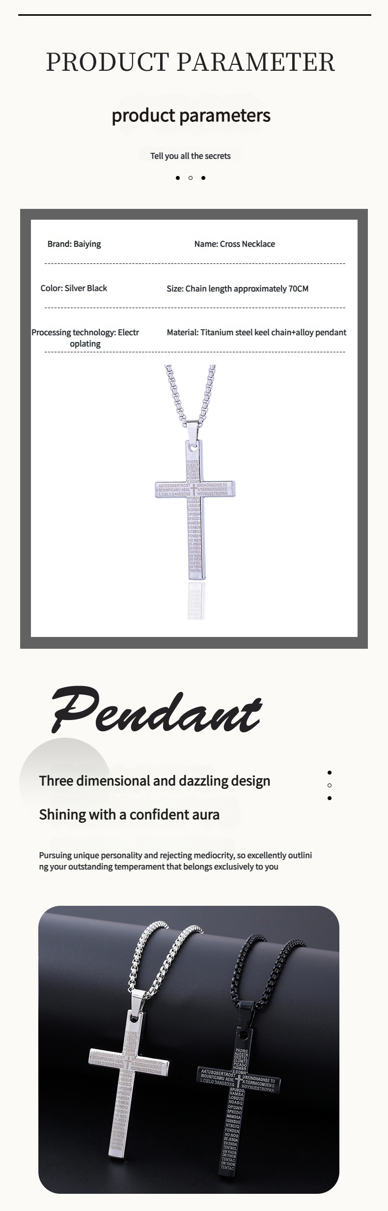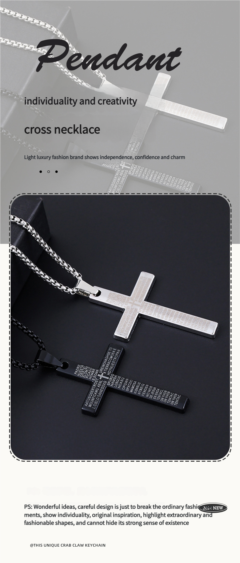 -Overview ?New cross necklace men's scripture androgynous style hip-hop pendant necklace women's jewelry