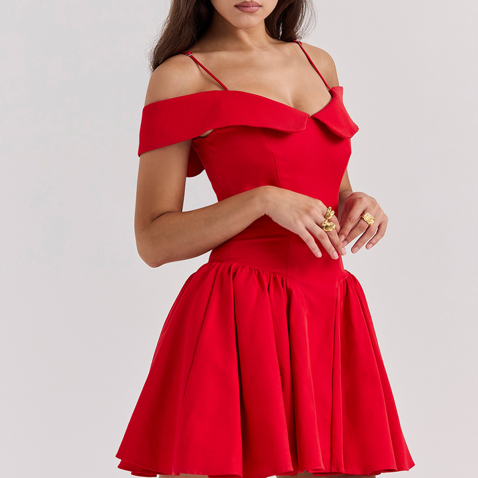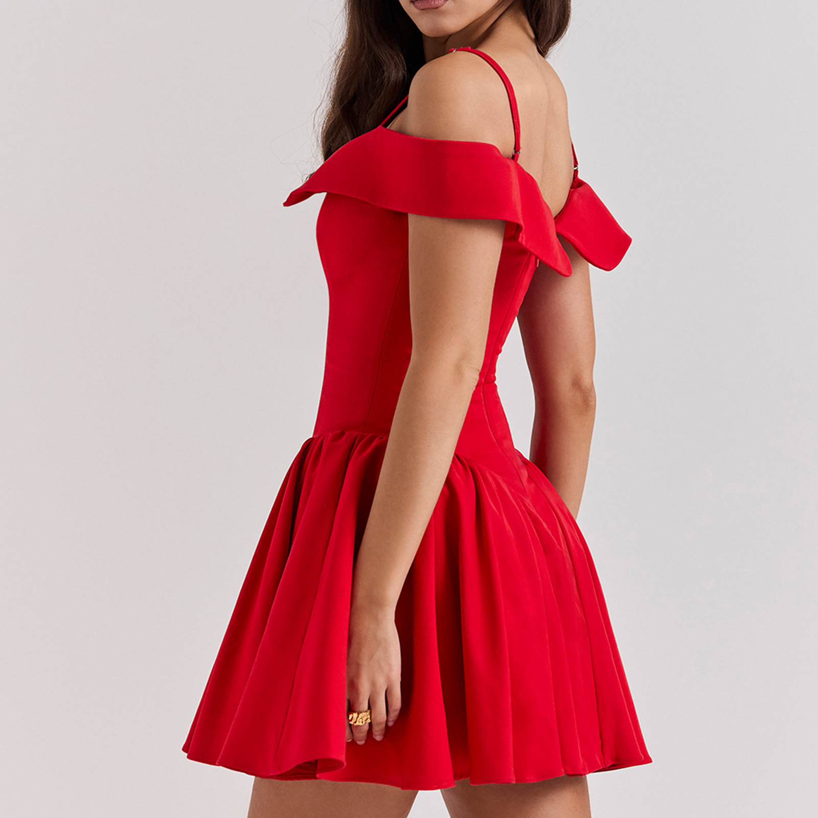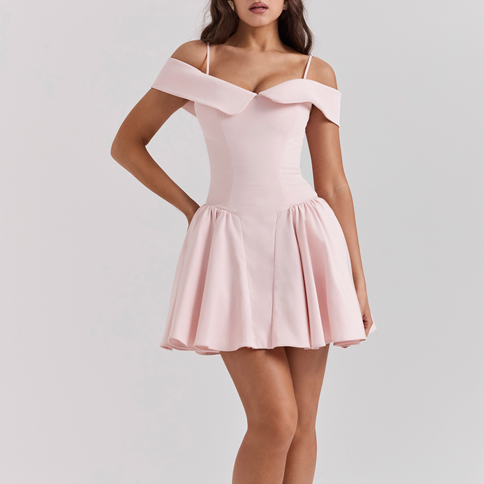 Elegant Design: Features a Hepburn-inspired silhouette with a V-neck and off-shoulder styling for a timeless, sophisticated look.