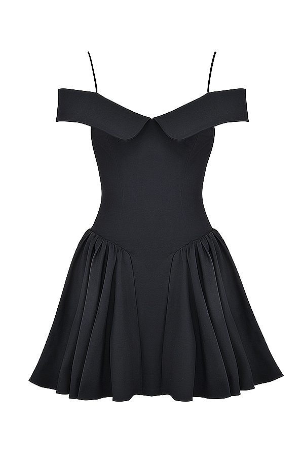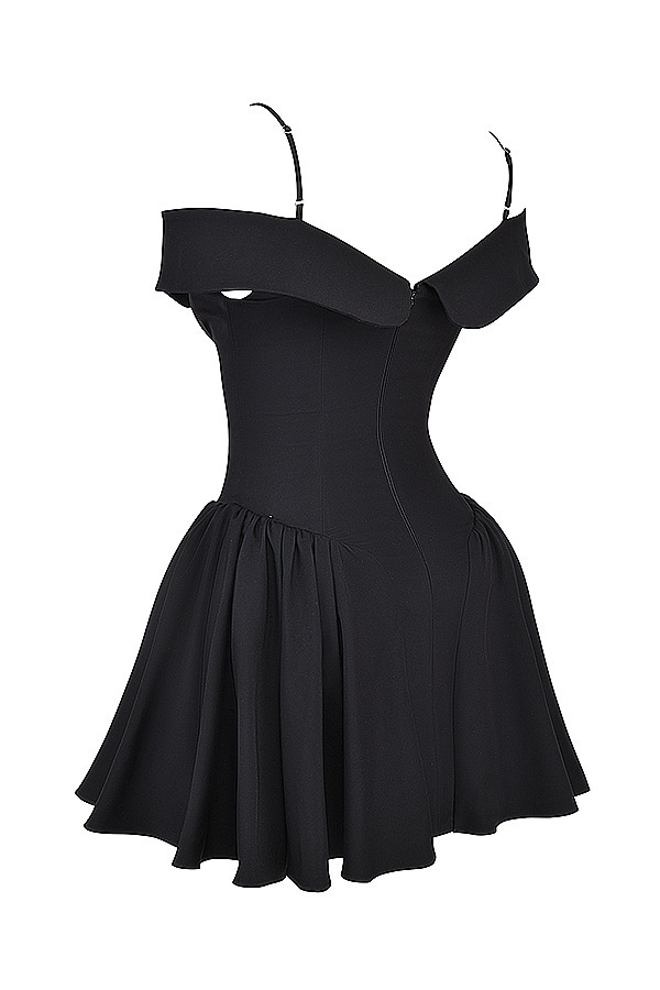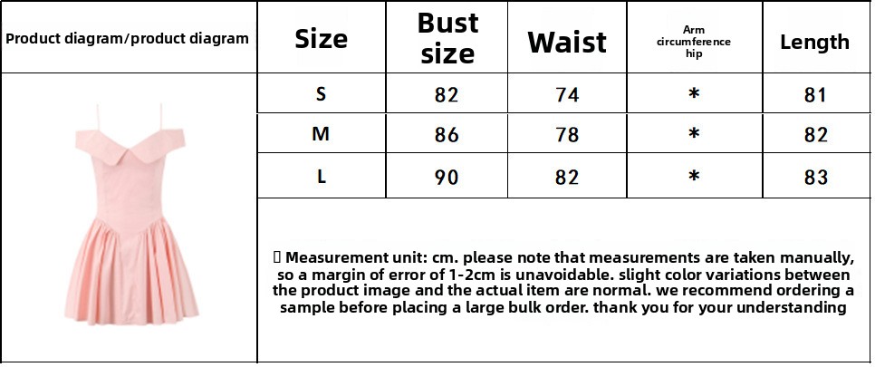 Style: Sleeveless, one-word collar, high waist, puff skirt
