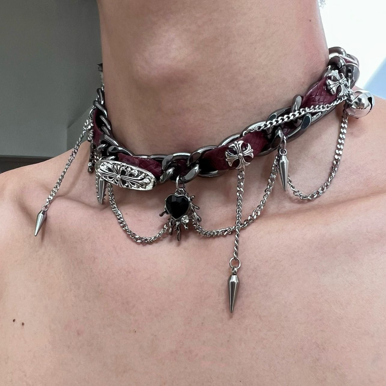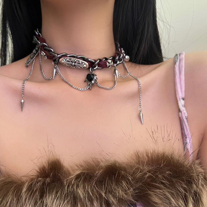Unique Design: Heavy embossed leather necklace with a heart-shaped pendant for a distinctive Y2K aesthetic.