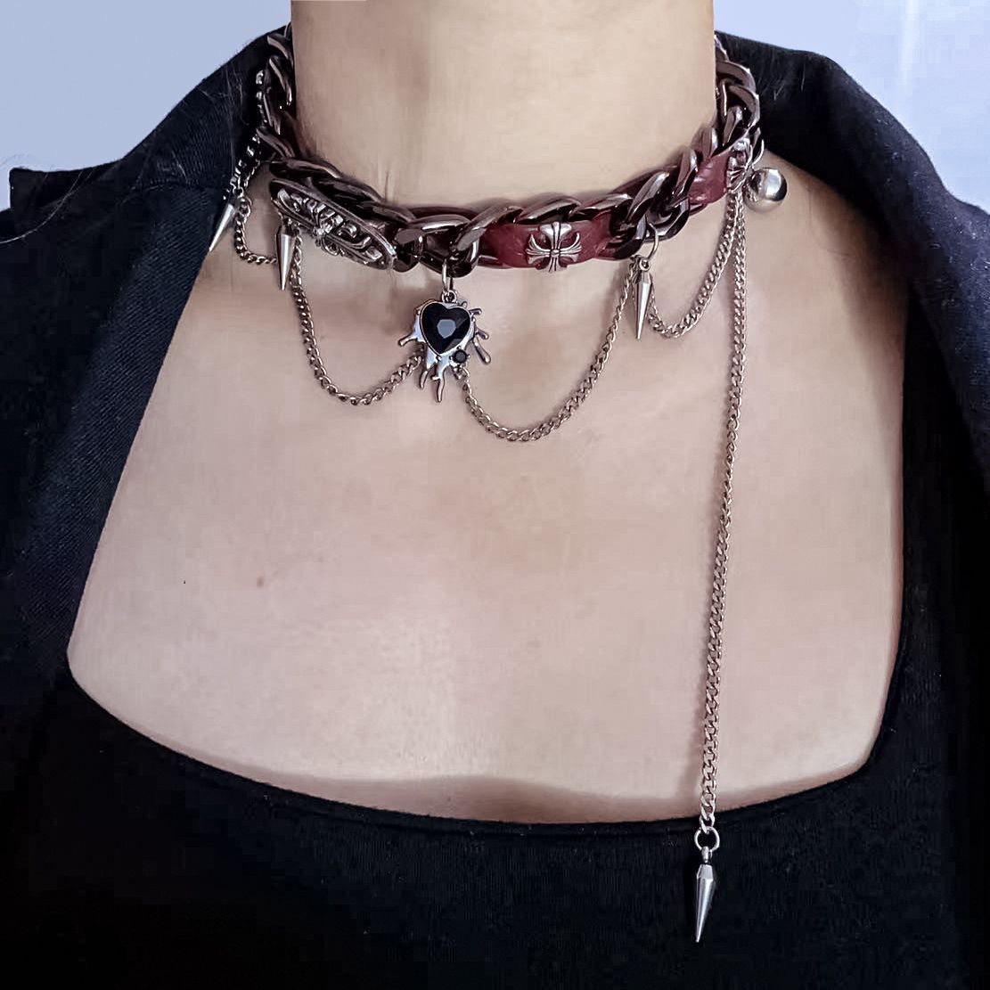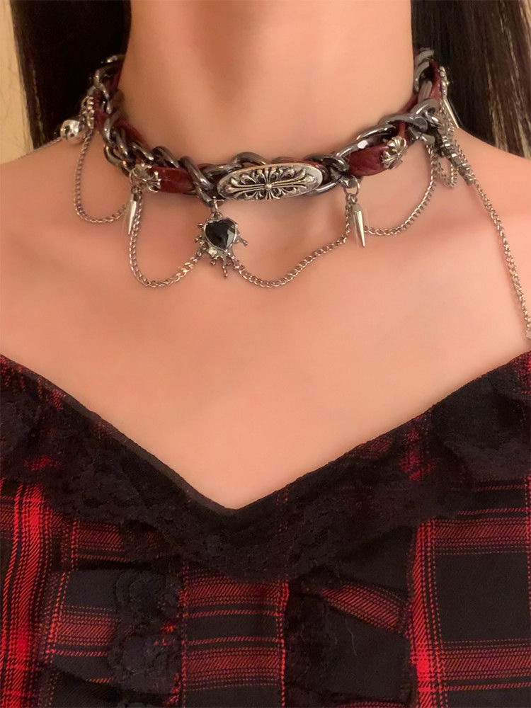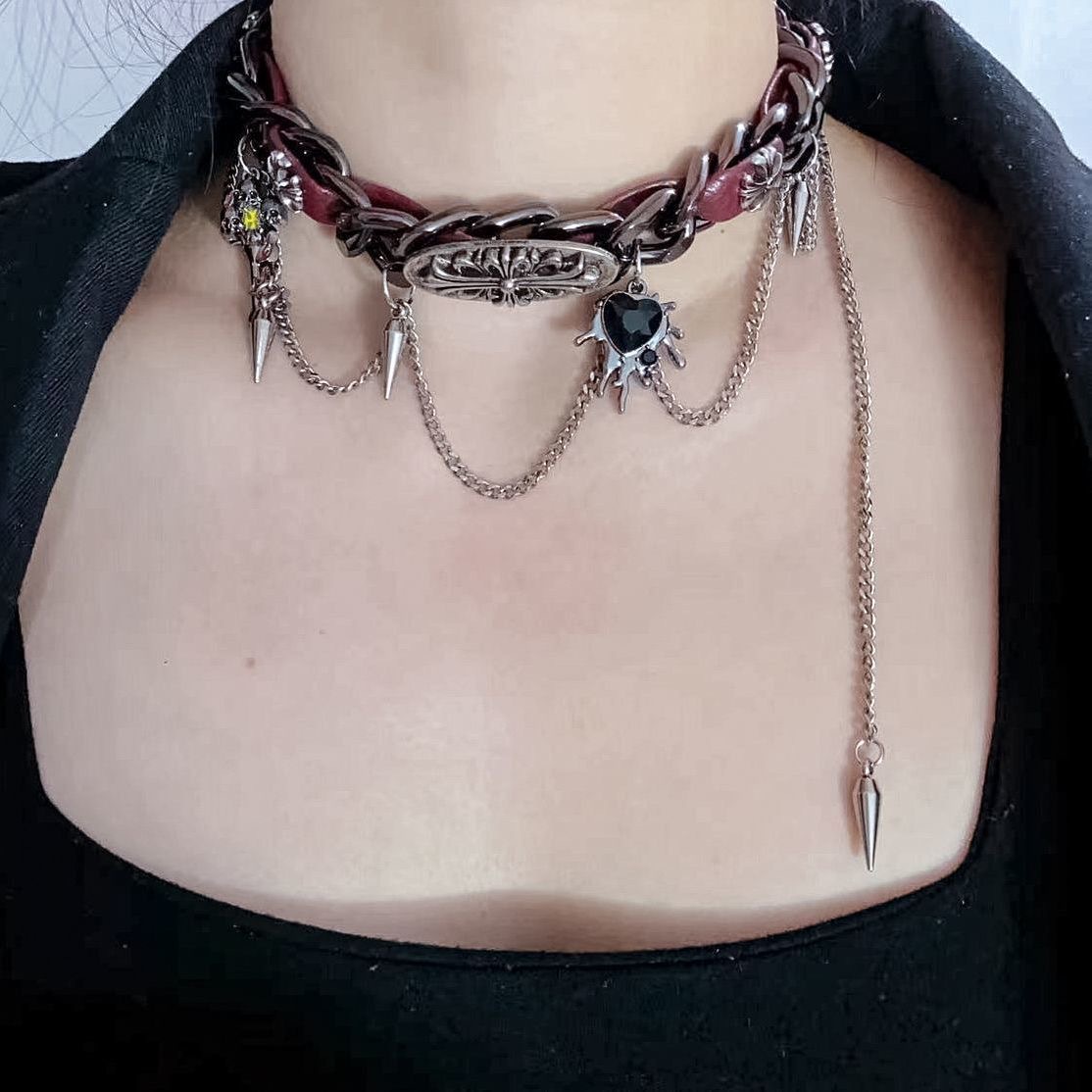 Y2K Embossed Leather Heart Necklace Gothic Punk Unisex